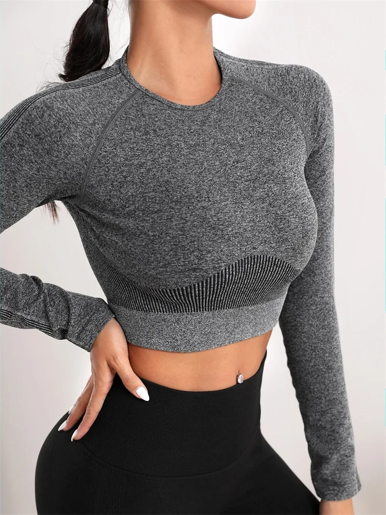 Woman Sports Workout Yoga Top Knitted Shirt Seamless Athletic Crop Top Long Sleeve Workout Tops for Women Fashion Gym Clothes